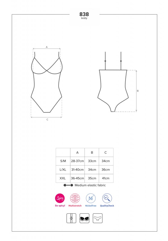 Боди на регулируемых бретелях, что позволяет добиться идеальной посадки. Потрясающий лиф с эластичными лентами и кристаллами на ложбинке не позволит отвести взор от бюста!